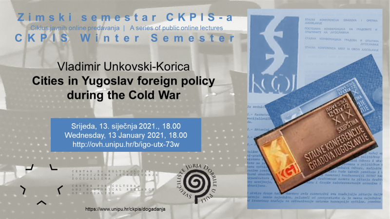 Vladimir Unkovski-Korica, predavač u području srednjoeuropskih i istočnoeuropskih studija na Sveučilištu u Glasgowu i autor knjige The Economic Struggle for Power in Tito’s Yugoslavia: From World War II to Non-Alignment (2016), predzadnji je gost Zimskog semestra CKPIS-a. Na temelju svojih istraživanja, provedenih za vrijeme boravka na Centru za napredne studije jugoistočne Europe pri Sveučilištu u Rijeci, održat će predavanje o ulozi gradova u jugoslavenskoj vanjskoj politici tijekom Hladnoga rata. Ukazat će na razvijeno međunarodno umrežavanje gradova i općina te uspostavu bilateralnih odnosa koji nisu nužno slijedili državnu vanjsku politiku i ideju nesvrstanosti. Predavanje će biti održano na engleskom jeziku u virtualnoj dvorani.