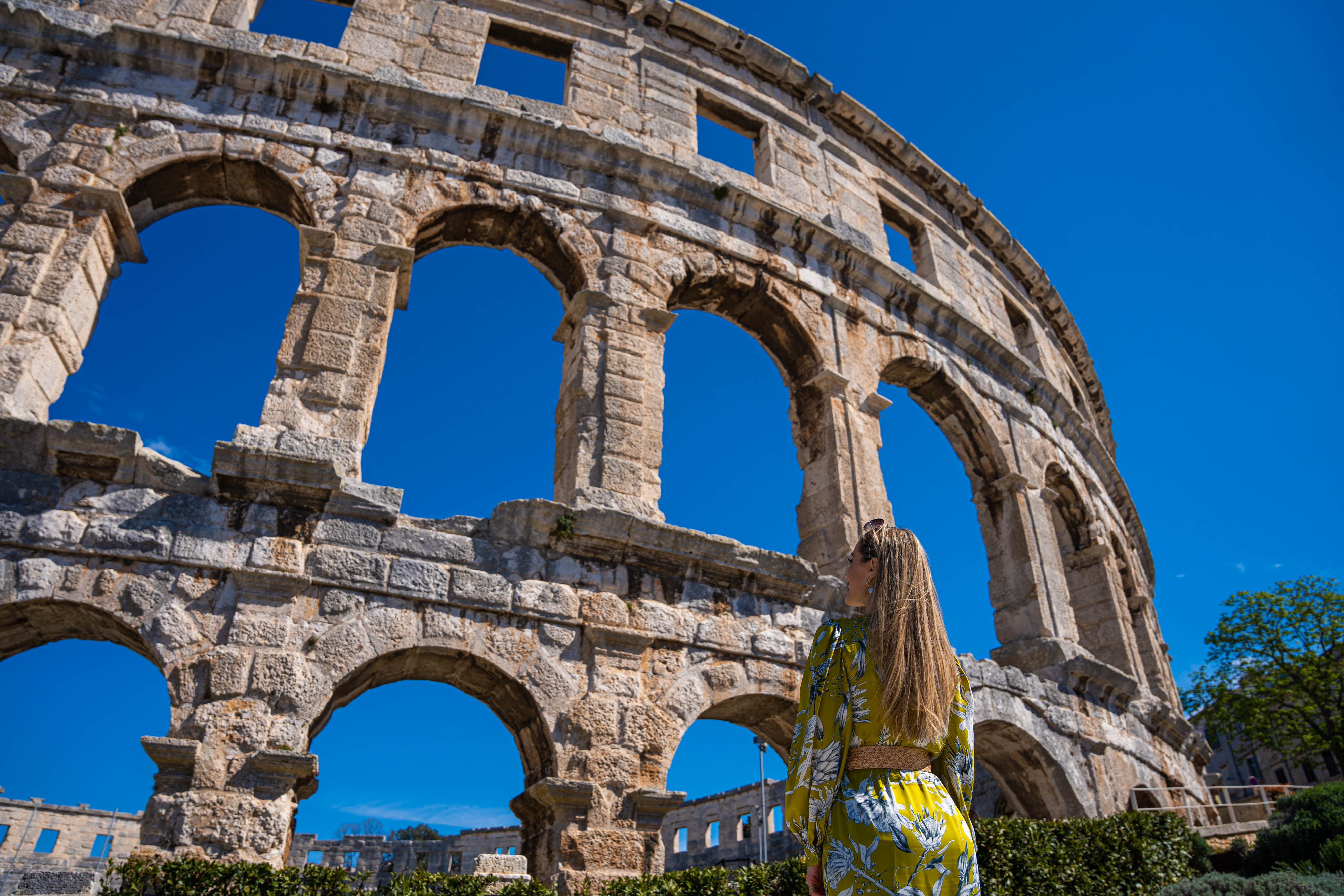 In the Roman Imperial period (1st - 3rd centuries) the greatest classical monuments in Croatia were built in Pula. The most magnificent and surely central classical monument is the Amphitheater popularly called the Arena. This Amphitheater, used for fights and battles of men and animals, was built in the 1st century AD, during the rule of Emperor Vespasian. The ground plan is elliptical, its size being about 130 m x 105 m, and 32 m high, which ranks it as the sixth largest Roman amphitheater existing today. The Arena could once hold up to 23,000 spectators, whereas today it can seat some 5,000 people. Classical Pula was supplied with all major achievements of Roman civilization, it had its water supply and sewage systems, Forum, which was the administrative, commercial and religious center, capitolium with temples (in the Forum), two theaters, large city cemetery (mentioned by Dante in his “Divine Comedy”), houses richly ornamented with mosaics and marble. The city was fortified by walls and was entered through some ten gates. The greater part was destroyed in the beginning of the 19th century, so that only some of the gates have been preserved until today. The Triumphal Arch of the Sergi is situated at the end of the street (Via Sergia) leading eastwards from the Forum. This triumphal arch leaned against the city gate (Porta Aurea) so that only its western, visible side was richly decorated. This monument was erected at the end of the 1st century BC by Salvia Postuma Sergi with her own money in honor of three members of her family who held important positions in Pula at that time. According to the inscription on the arch, the monument was constructed between 29 and 27 BC. For centuries this impressive Roman monument has attracted the attention of famous artists, especially Italian ones, such as the great Michelangelo. Heading north there are two other remaining city gates: the Gate of Hercules and the Twin Gates. Outside the city gates lay the cemeteries called necropolises. Fragments from monuments found at these burial areas are today kept in the Archaeological Museum of Istria. Not far from the Twin Gates are the remains of a sepulchral structure, octagonal Mausoleum dating from the 1st – 2nd centuries AD. The Forum, the central city square of ancient and medieval Pula, was on three sides surrounded by arcades with statues and reliefs and on the northern side by temples. The Temple of Augustus, built between 2 BC and AD 14, has been completely preserved to the present day. On the eastern slopes of the central hill of the city, present-day Kaštel, are remains of the Small Roman Theater with its scene, semi-circular orchestra and tiered section for the audience. The Large Roman Theater, situated outside the city, was completely destroyed; only a fragment of its relief on the exterior wall is kept in the Archaeological Museum of Istria. Close to the Small Roman Theater is the Archaeological Museum of Istria which today houses numerous monuments from the prehistoric, Roman and early medieval periods found in the area of Pula and Istria.