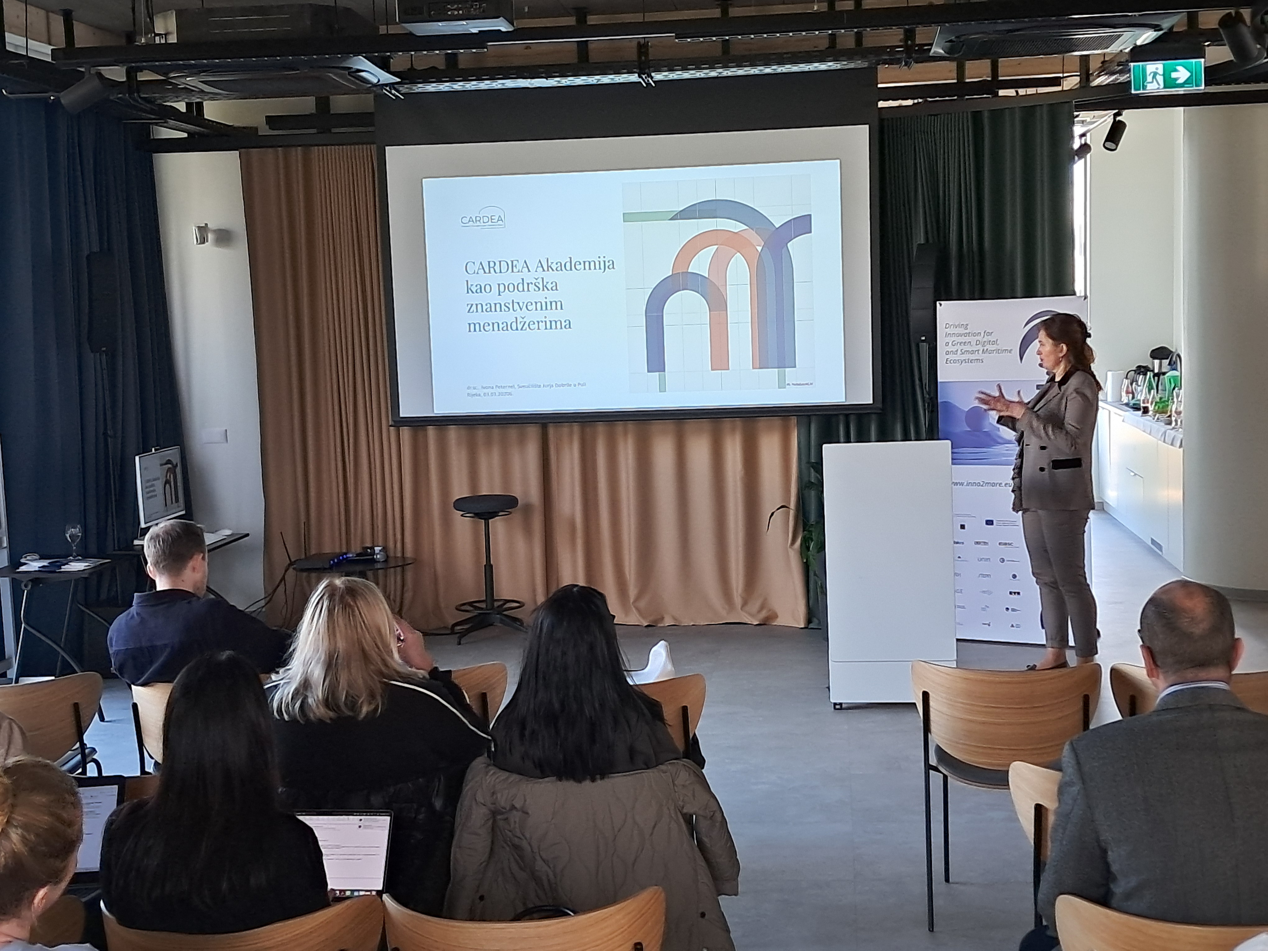 Dr. sc. Ivona Peternel sa Sveučilišta Jurja Dobrile u Puli predstavila je CARDEA Akademiju i mogućnosti razvoja karijera znanstvenih menadžera, s posebnim osvrtom na razvoj kompetencija potrebnih za rad na inovacijskim projektima.