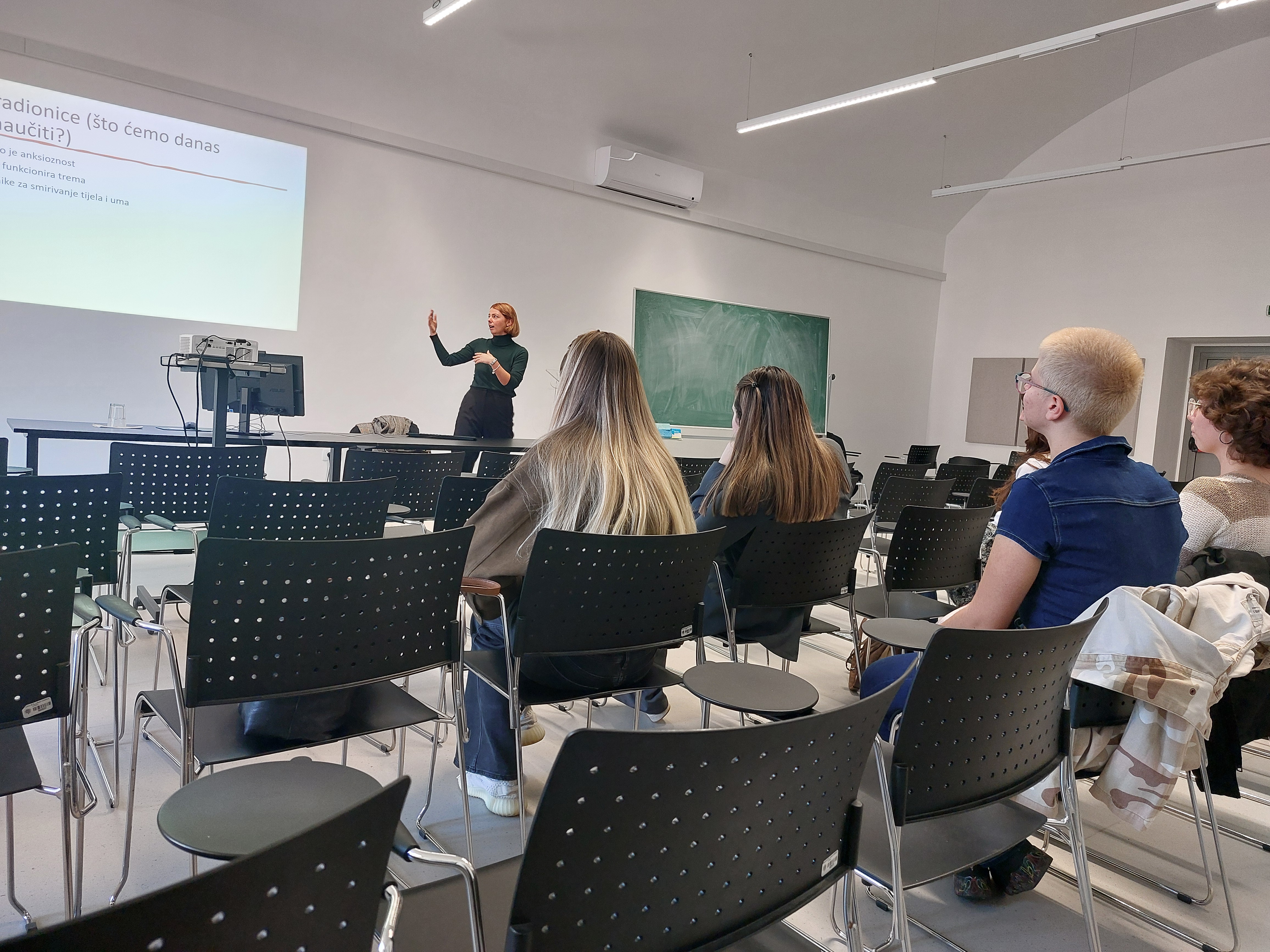 U srijedu, 12. studenoga 2025., u Auli Magni Filozofskog fakulteta Sveučilišta Jurja Dobrile u Puli, u organizaciji Ureda za ravnopravnost, raznolikost i inkluzivnost, održana je radionica pod naslovom „Kako umiriti tremu: suočavanje sa socijalnom anksioznošću i javnim nastupima“, koju je vodila psihologinja Lara Mihovilović, vanjska stručna suradnica Psihološkog savjetovališta Sveučilišta Jurja Dobrile u Puli.